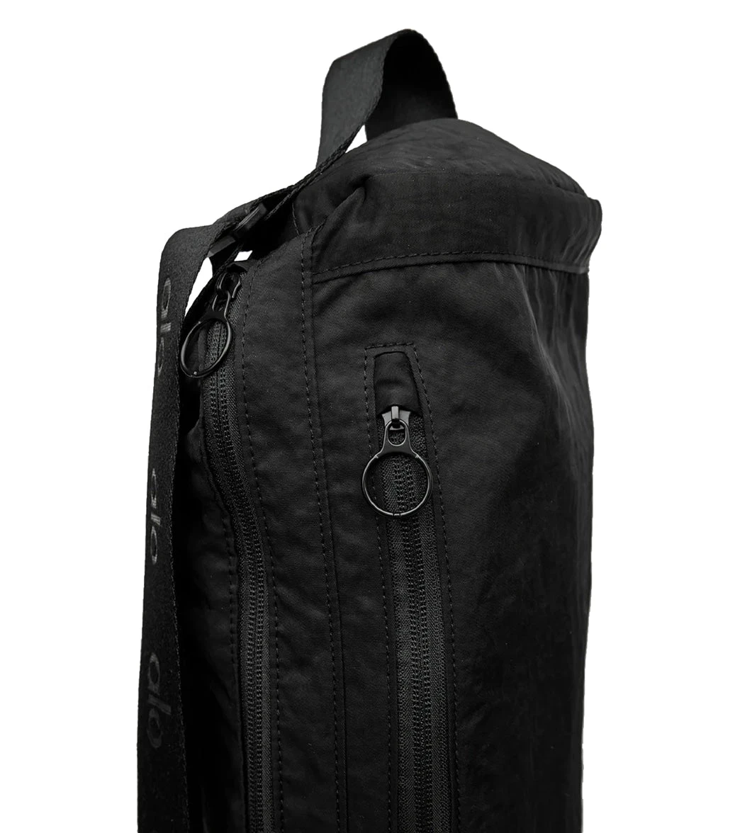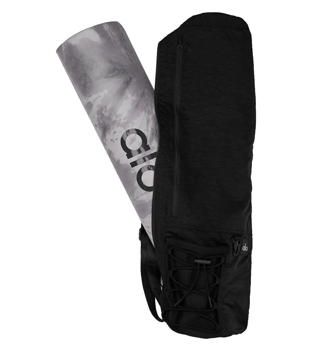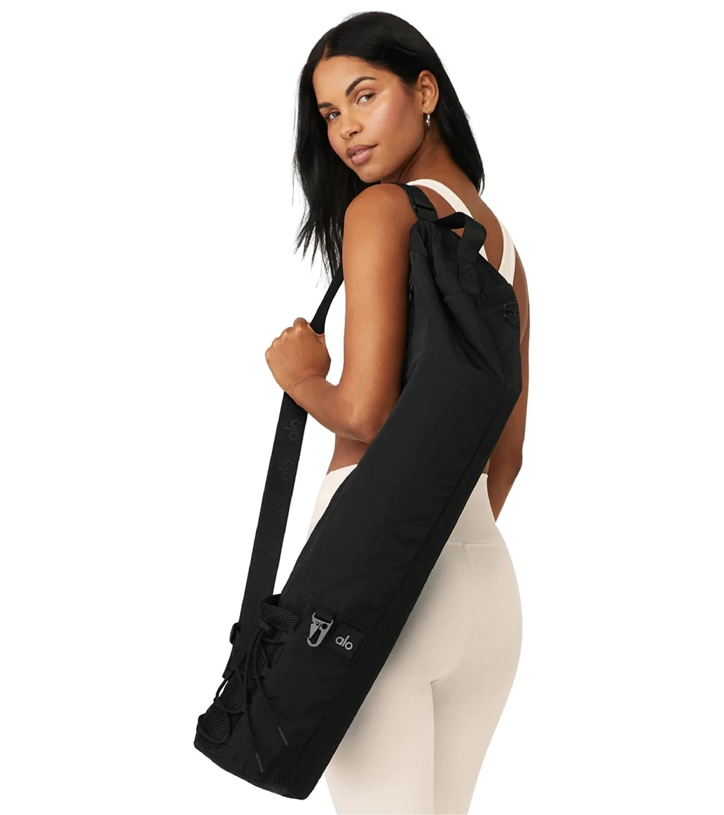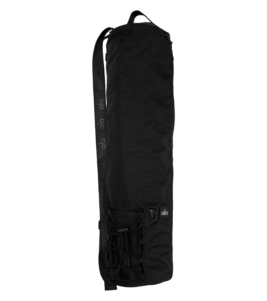 A yoga class necessity. The Utility Mat Bag is studio-street smart with a soft, adjustable shoulder strap and a top handle for easy carrying. Easily attach your keys with the carabiner hook and store small essentials in exterior grab-and-go mesh storage pockets.