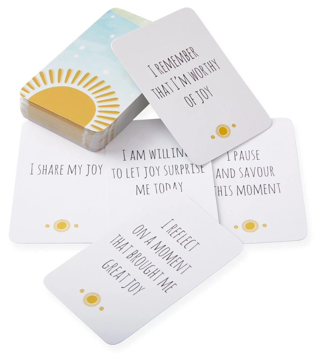 The May You Know Joy May You Find Joy is a 42-card mini intention card deck, designed to inspire you to find the joy within you and all around you every day. These cards are a simple and beautiful way to spread joy and also cultivate it in our everyday lives.